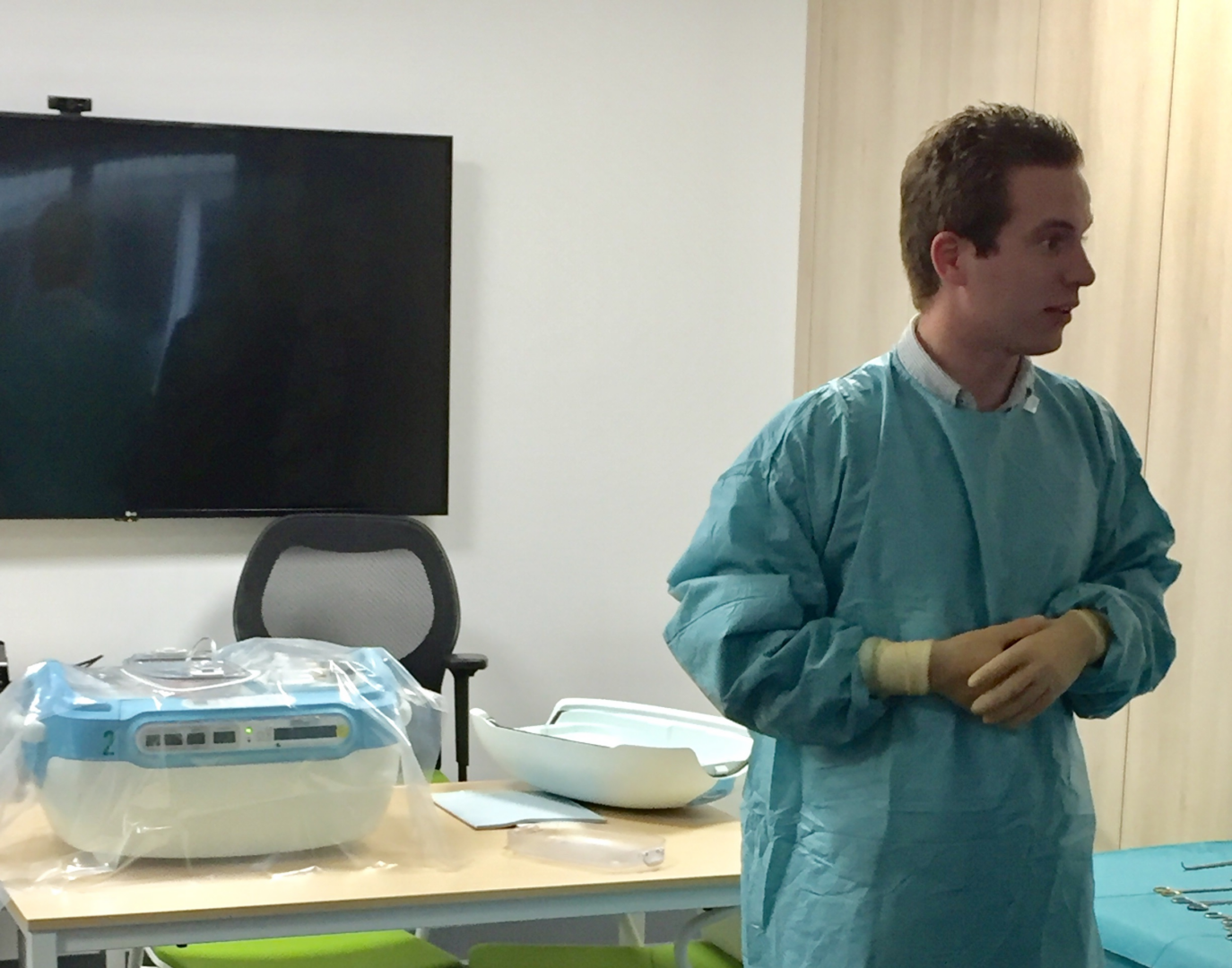 Tijdens de uitgebreide lunchpauze was er de gelegenheid om onder begeleiding het IVF-laboratorium te bezoeken of een demonstratie (gegeven door enthousiaste leden van het Zelfstandig Uitname Team Zuid-Oost) van nierperfusie t.b.v. transplantatie bij te wonen.